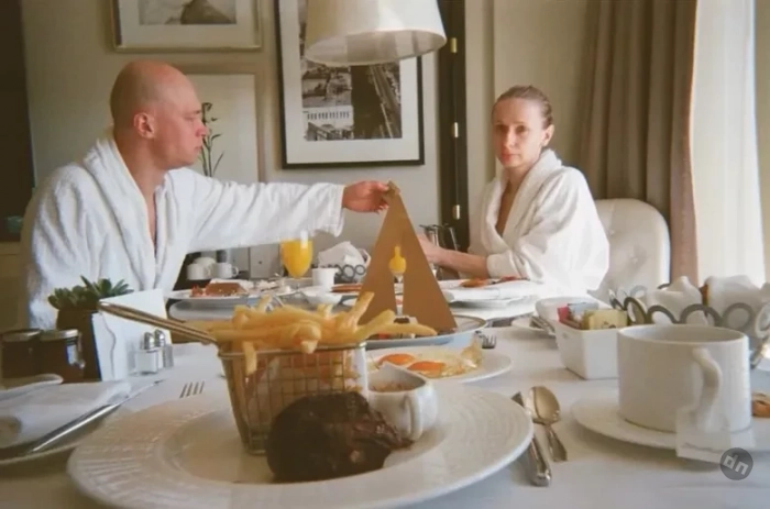 На снимках Марк Эйдельштейн и Юра Борисов с женой запечатлены в номере отеля за завтраком за несколько часов до церемонии. Кроме того, на новых фотографиях запечатлены первые моменты самой премии: Юра Борисов в костюме позирует вместе с Марком, а Майки Мэдисон — в зрительном зале.