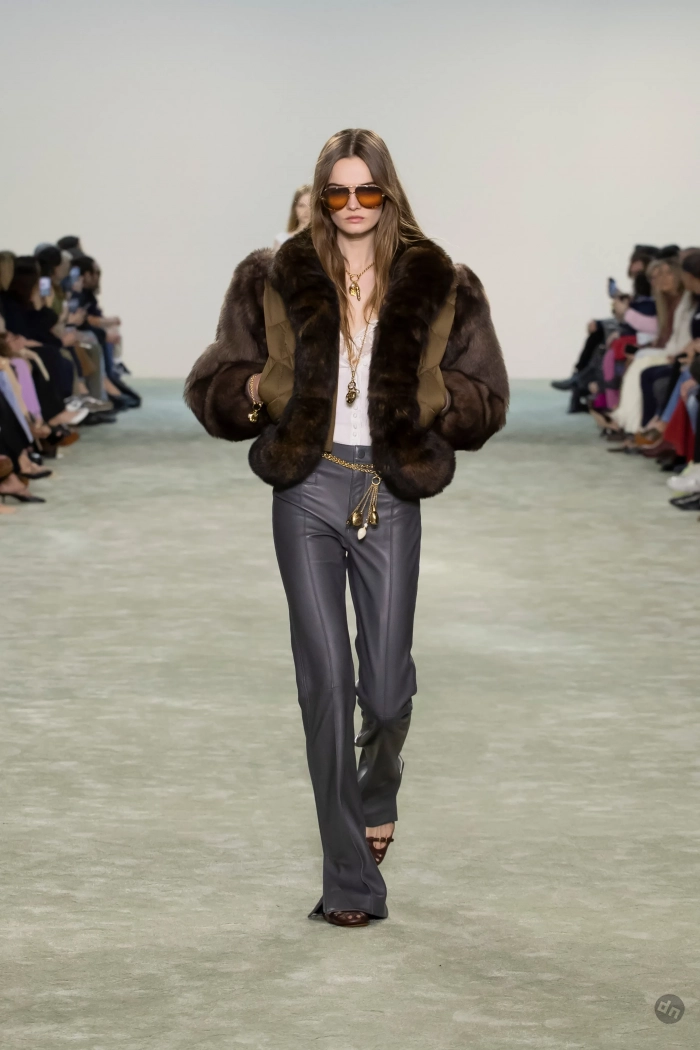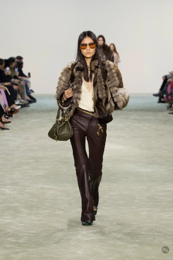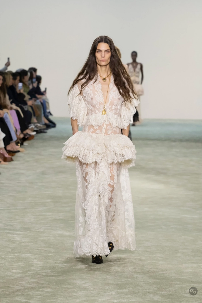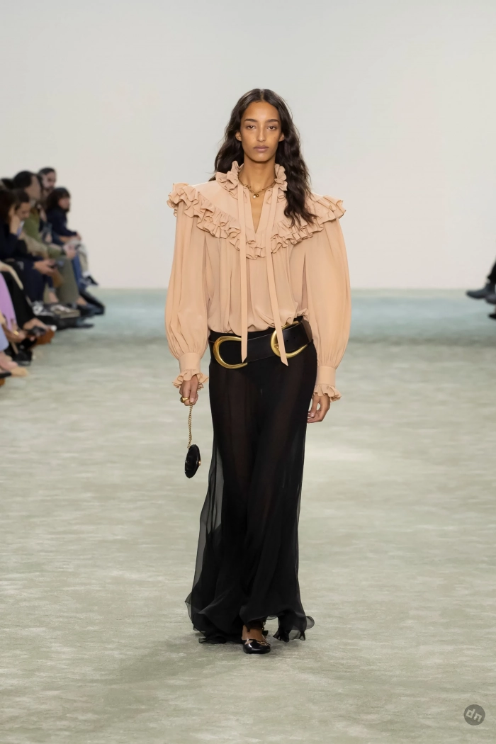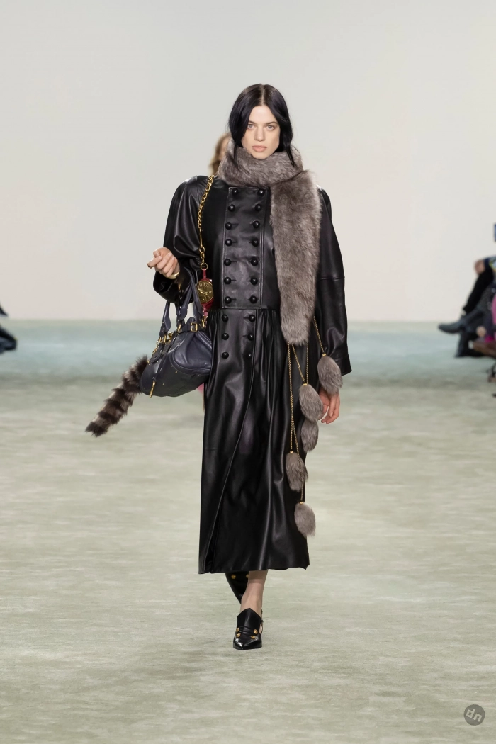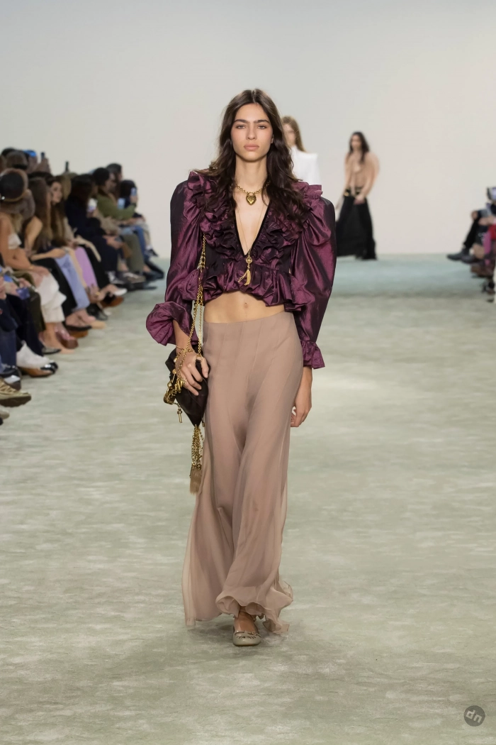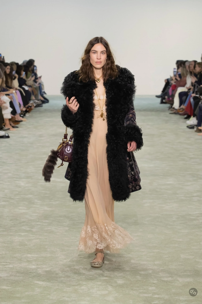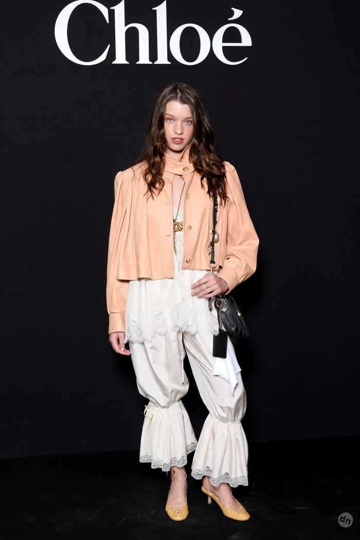 Эвер Андерсон/Фото: Pascal Le Segretain/Getty ImagesЭвер Андерсон/Фото: Pascal Le Segretain/Getty ImagesПэрис Джексон/Фото: Pascal Le Segretain/Getty ImagesПэрис Джексон/Фото: Pascal Le Segretain/Getty ImagesКристин Милиоти/Фото: Pascal Le Segretain/Getty ImagesКристин Милиоти/Фото: Pascal Le Segretain/Getty ImagesВ показе новой осенней коллекции Chloe под креативным руководством Чемены Камали приняли участие: инфлюенсер Алекса Чанг, дочь супермодели 1990-х Кристен Макменами Лили, топ-модели Лоли Бахия и Лулу Тенни, а закрыла шоу звезда подиумов Мона Тугаард. Дизайнер представила коллекцию в привычном для бренда стиле бохо, в ней преобладали длинные платья из струящейся ткани, кожаные плащи, дублёнки с мехом, короткие шубы, блузы с рюшами, кружевные платья, широкие ремни, сумки украшали меховые брелоки, а из обуви модели носили балетки, мюли и сапоги на каблуках.