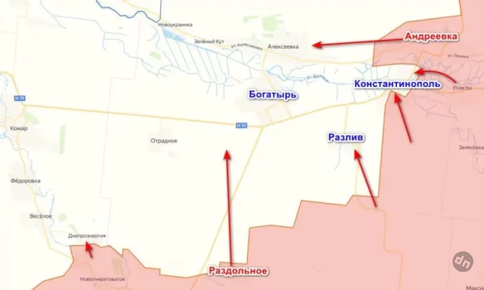 Согласно информации с украинских ресурсов, на вечер четверга, 6 марта, штурмовые подразделения группировки войск «Восток» прорвали оборону ВСУ со стороны села Раздольное и продвинулись в северном направлении до 3 км. Как заявил медийный боевик с позывным «Мучной», находящийся на этом направлении, ВС РФ планируют обойти село Богатырь с запада, тем самым отрезав всю украинскую группировку от снабжения.