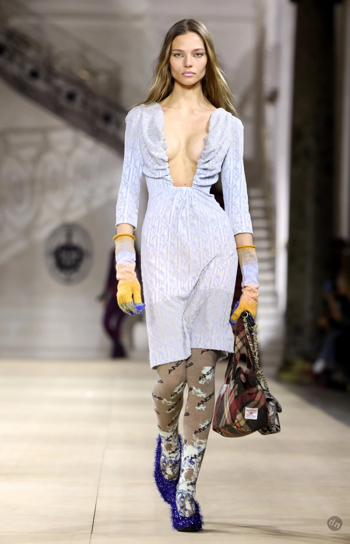 Первым из них стал показ новой осенне-зимней коллекции Vivienne Westwood. Алеся появилась под софитами в нежно-голубом платье с глубоким декольте, которое дополняли необычные аксессуары в стилистике бренда.
