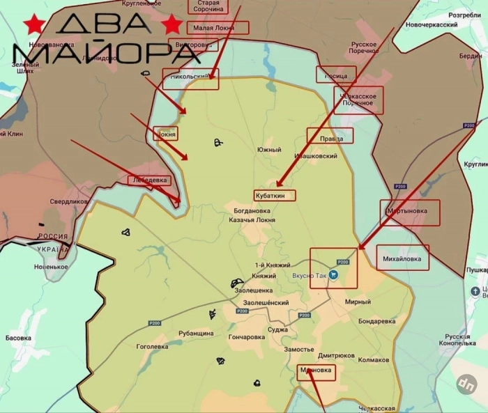Также с мест сообщают о том, что взят под контроль посёлок Локня южнее, наши части зашли в Богдановку рядом с Казачьей Локней. ВСУ массово отходят и даже бегут с территории севернее Малой Локни и вплоть до Казачьей Локни, куда стекаются остатки северного гарнизона ВСУ, однако сейчас этот село отрезано от Суджи подорванными мостами через реку Локня, так что долго удерживать его будет для ВСУ проблематично, информирует Олег Царёв в своём Telegram-канале.