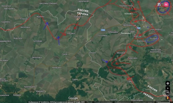 Южнее Суджи наши части продолжают пытаться выйти на южные окраины Гончаровки и продолжается зачистка холмов между Меловым и Гуево.