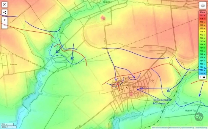 На карте я указал точку высадки противника, о которой идет речь. В это самое время части 74 бригады дочищали северо-восточную часть села. Собственно, чтобы сорвать этот процесс и была произведена эта самоубийственная высадка. И все ее участники к ночи были уничтожены.
