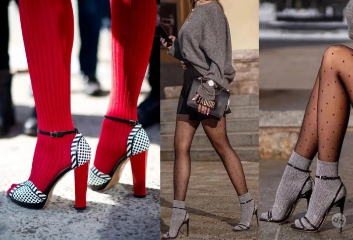 Туфли с открытым мысом вновь на пике популярности. Но главная фишка – носить их с колготками. Если это кажется слишком смелым решением, можно остановиться просто на обуви без мыска, без дополнительных экспериментов.