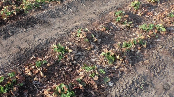 - Рыхлим почву неглубоко, так как корни клубники расположены близко к поверхности.