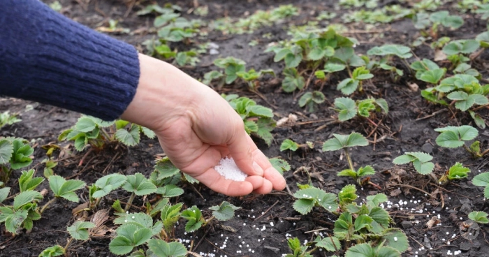 Чтобы улучшить качество урожая, следует подкормить клубнику азотными удобрениями: