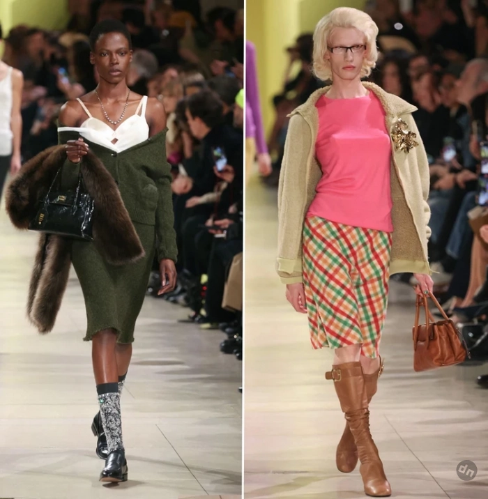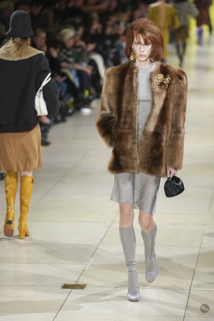 Миучча Прада в рамках своего бренда Miu Miu продемонстрировала расслабленные образы, в которых уже по традиции сочетала несочетаемое: полушубки и укладки из нулевых, шелковые комбинации, цветные гольфы, крупные украшения… Такое себе может позволить только уверенная женщина, именно такой и является героиня Miu Miu.