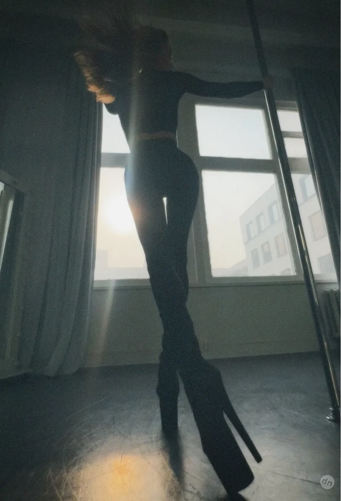 Светлана Ходченкова опубликовала в инстаграме* новые фотографии, которые сделала во время своих тренировок на пилоне. На снимках 42-летняя актриса позирует у шеста в откровенных позах, одетая в чёрный кроп-топ с длинными рукавами, лосины в тон и стрип-туфли на высоком каблуке и платформе.