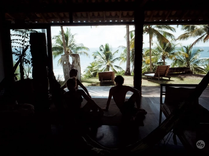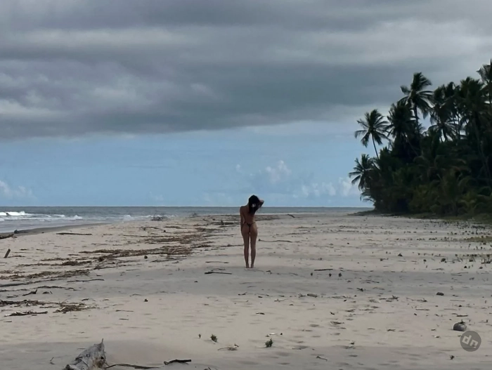 На фотографиях 20-летняя модель позирует в купальнике с кокосом, целуется с возлюбленным, демонстрирует фигуру, повернувшись к камере спиной, и проводит время с друзьями. К снимкам она добавила подпись: "Кокосовая вода и солёные волосы".