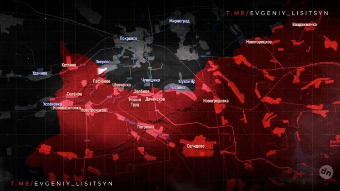 В Дзержинск (Торецк) ВСУ продолжают забрасывать личный состав и технику, бои за агломерацию продолжаются. Севернее Воздвиженки идут бои в районе Тарасовки: ВСУ возвели протяжённые опорные пункты.