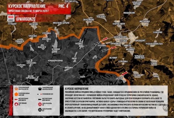 В свою очередь Telegram-канал "Два майора" в обзорной сводке от 16.03.2025 следующим образом описывает главные события в зоне СВО: