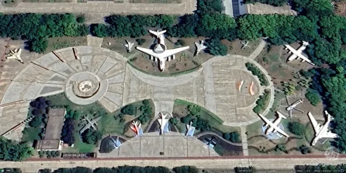 Спутниковый снимок Google Earth: самолёт ДРЛО KJ-2000 в центре мемориального комплекса на заводском аэродроме Сианьской авиастроительной корпорации