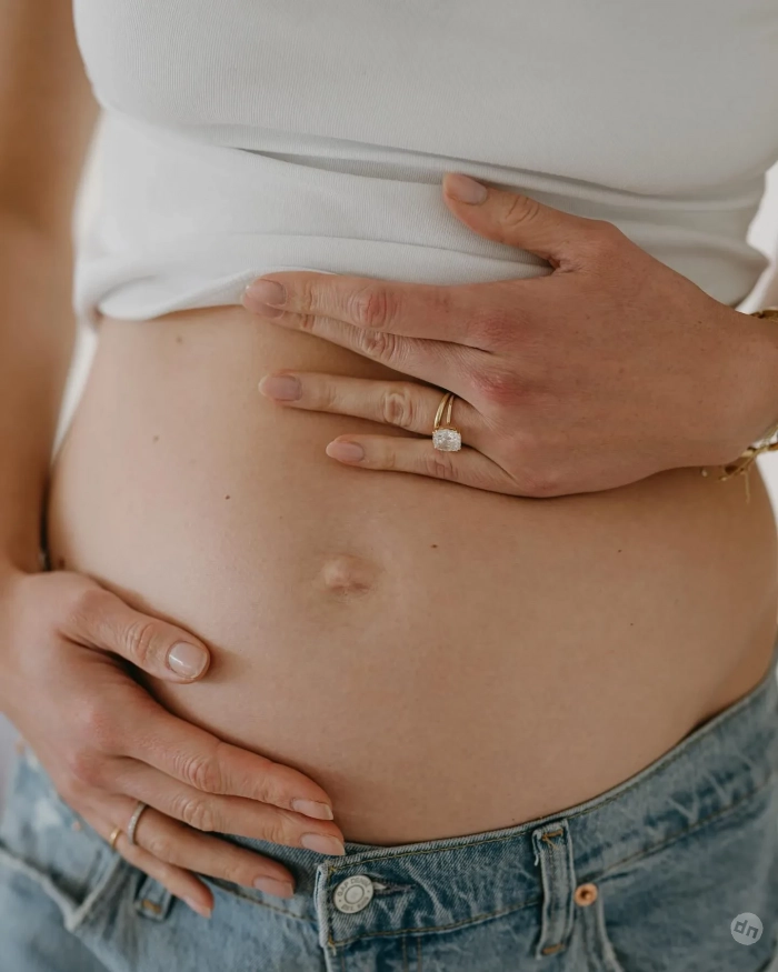 На снимках Клосс демонстрирует округлившийся живот, позируя в облегающем чёрном платье с длинными рукавами и белой футболке, которую она задрала, чтобы подчеркнуть свой новый статус. Помимо этого, она добавила кадр, на котором её сыновья Леви и Элайджа обнимают друг друга. "Трое — это уже вечеринка", — подписала Карли публикацию.