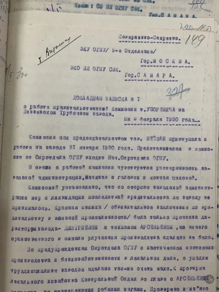 Ну а эта докладная записка в ОГПУ попала в крестьянские дела, скорее всего, случайно, потому что касается проверки на одном из пензенских военных заводах. Очень интересные факты в ней изложены…