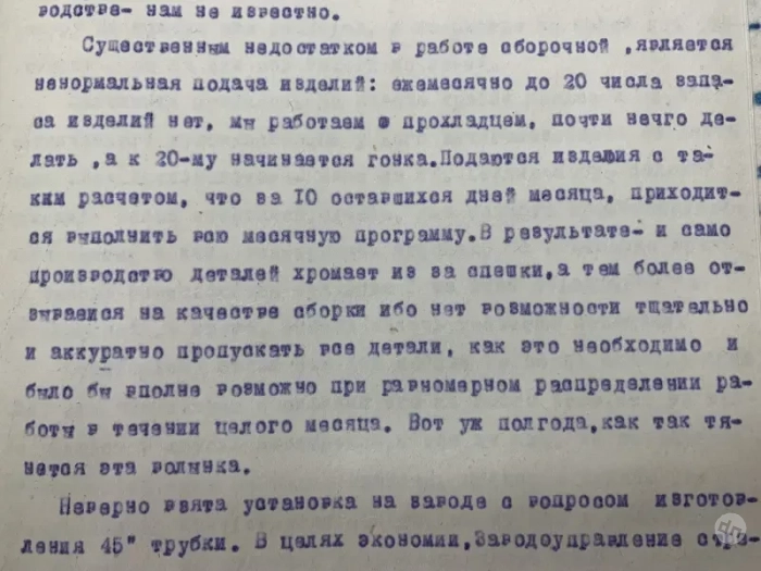 Вы только посмотрите: проверка была в феврале 1930 года, но всё это же самое имело место и в 60-е, и в 70-е, и в 80-е годы советской власти. Ну никак нельзя было тогда покупать бытовую технику, выпущенную в конце месяца. А только ту, что была сделана в начале. И плохо было тем, кто на это не обращал внимания! То есть прошли десятилетия, но искоренить подобное явление у нас в советское время так и не сумели.