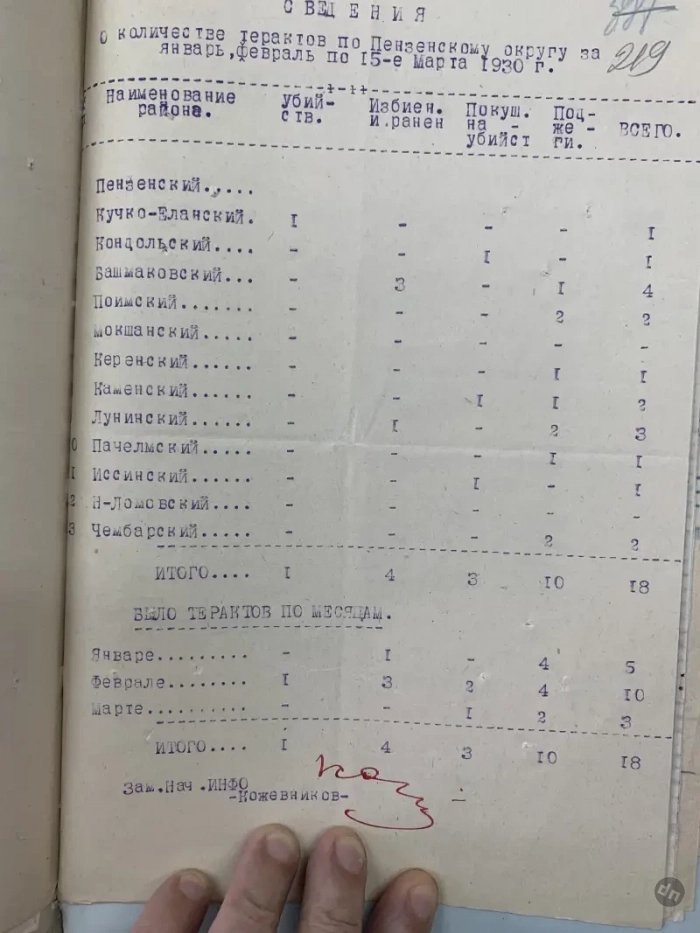 Отчет о терактах с января по март 1930 г. Убийство одно, избиений четыре… А в целом не так уж и много, да и какие уж это теракты? Но… Важно правильно «явление» назвать. Если пырнули ножом в пьяной драке, то это бытовка, а вот если зарезали сельского активиста, то, разумеется, это теракт. Так органы повышали собственную значимость, а количество терактов по стране росло, словно снежный ком, со всеми вытекающими из этого последствиями!