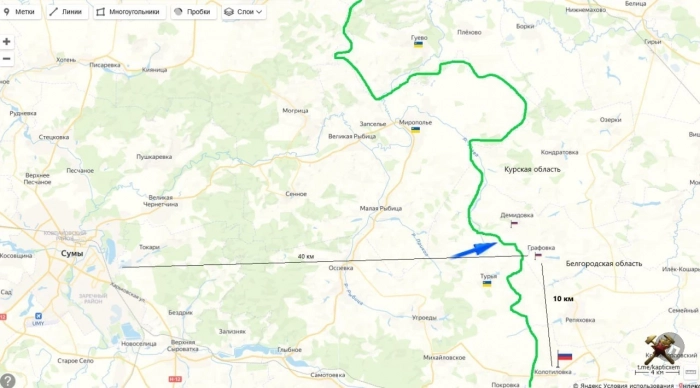 Между тем, сегодня во вторник на стыке Курской и Белгородской областей была осуществлена атака ВСУ манёвренной группой. Графовка находится в 10 км от МАПП Колотиловка, от которой самый удобный и короткий путь на украинский областной центр город Сумы - около 40 км. А накаты ВСУ на Колотиловку в том году проходили регулярно и с танками и с РСЗО.