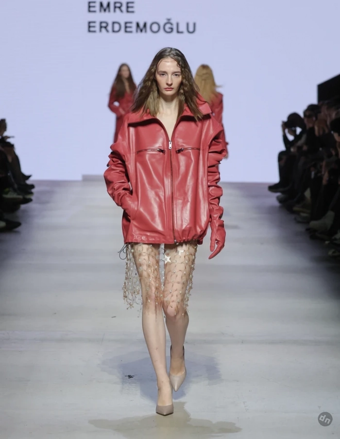 Турецкий бренд Emre Erdemo lu, не первый раз принимающий участие в Московской неделе моды, презентовал новую коллекцию, главным материалом для которой стала кожа во всевозможных проявлениях — от более привычных плащей до менее ожидаемых брючных костюмов. А открывал и закрывал показ знаменитый турецкий актер Ураз Кайгылароглу, известный в России по сериалам «Дочь посла» и «Спрячь меня».