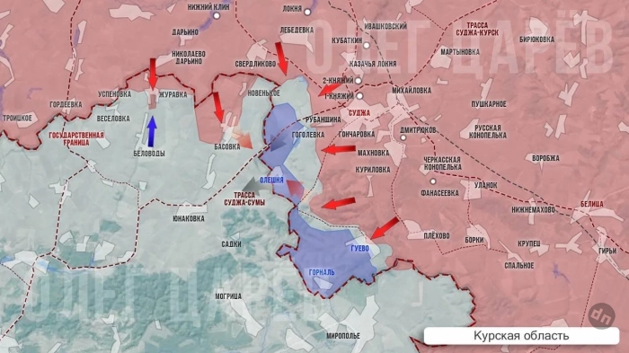 В Курском предграничье за прошедшие сутки значимых изменений нет. Продолжаются бои в районе Гоголевки и в районе Гуево. Отмечается кратно возросшая активность украинских дронов над Суджанским районом, также продолжаются артиллерийские обстрелы.