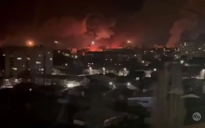 В сети опубликованы кадры, на которых запечатлен момент успешных ударов беспилотниками семейства «Герань» по объектам в городе Кировоград (украинское название Кропивницкий).