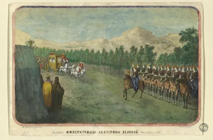 Н. Седов. Изображение встречи Екатерины II амазонскою ротой во время ее поездки в Крым в 1787 г.