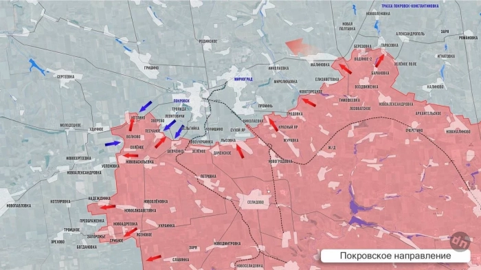 Позитивная новость пришла с левого фланга Покровского фронта - ВС РФ восстановили контроль над Шевченко, выбив противника из северо-восточной части посёлка. В Удачном и Котлино продолжаются встречные бои без особых изменений на земле. На правом фланге очень тяжёлые бои в Елизаветовке, где противник имеет очень сильные рубежи. Враг наступает в районе Малиновской развязки, по данным с мест, смогли несколько потеснить наших. В Тарасовке у ВС РФ есть тактические успехи. Встречные бои в районе Водяного Второго и Берёзовки, там противник активно контратакует.