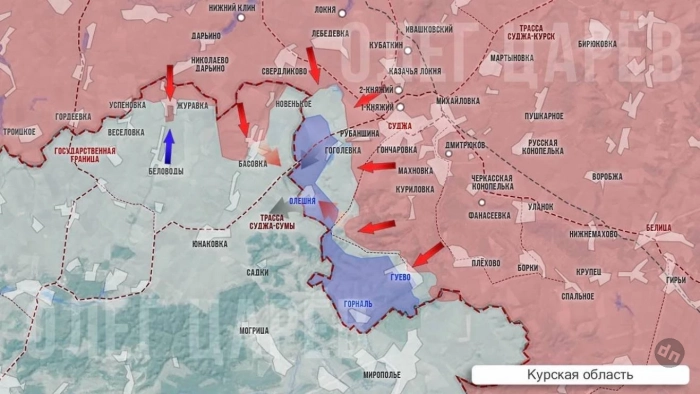 В приграничье Курской области российские войска продолжают штурмовать Гоголевку и зачищают территории к северу от Гуево, выбивая оставшиеся группы украинских военных из лесных участков.