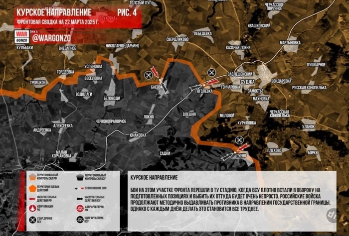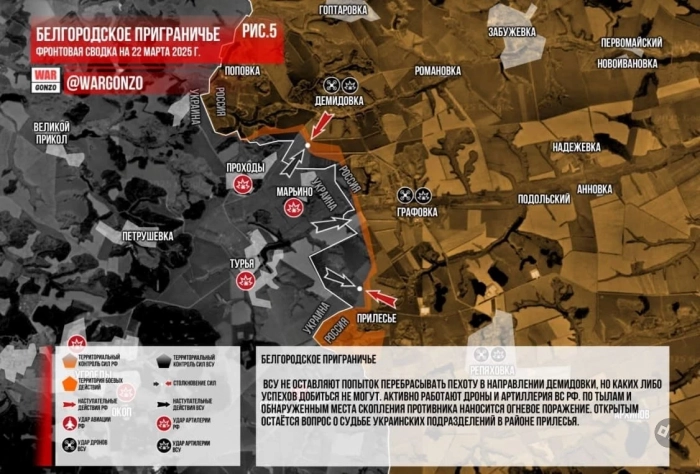 В приграничных районах Курской и Белгородской области идут ожесточённые бои: свежая карта боевых действий от 22 марта