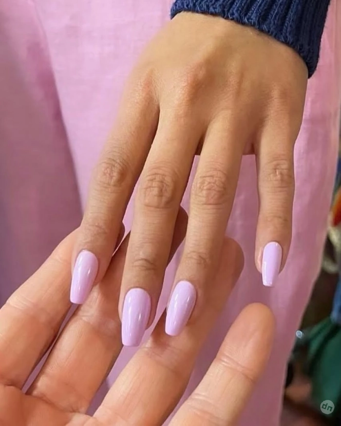 Нежный сиреневый цвет универсален и подходит для любого случая. Он прекрасно смотрится как в полупрозрачном «желейном» варианте, так и в плотном насыщенном покрытии. Гамма оттенков может варьироваться: от холодных фиалковых до теплых, приближенных к розовым, пишет сайт echonedeli.ru.