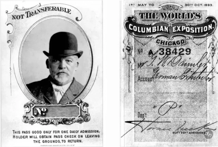 Персональный пропуск Готлиба Даймлера на Всемирную выставку в Чикаго