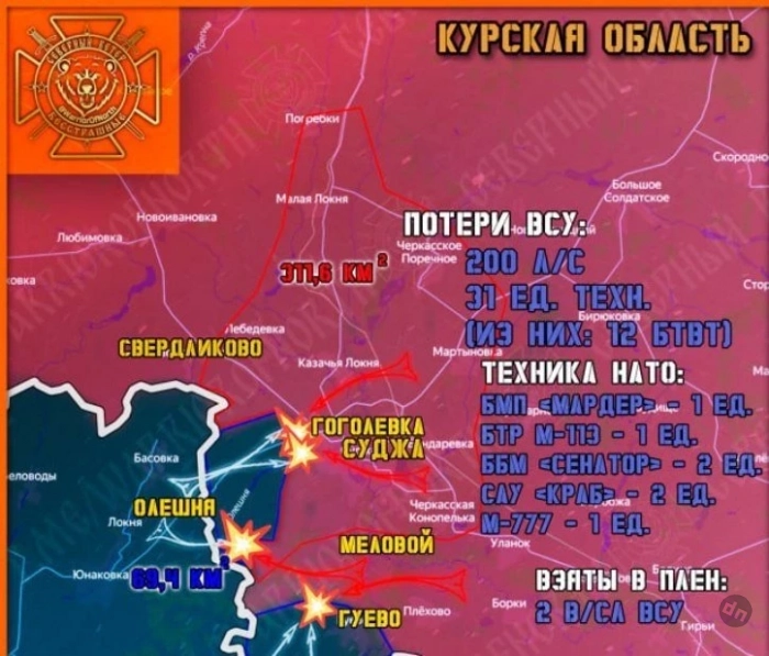 Общее продвижение Северян в Курской области составило свыше 2900 метров, уничтожено 12 единиц вражеской бронетехники.