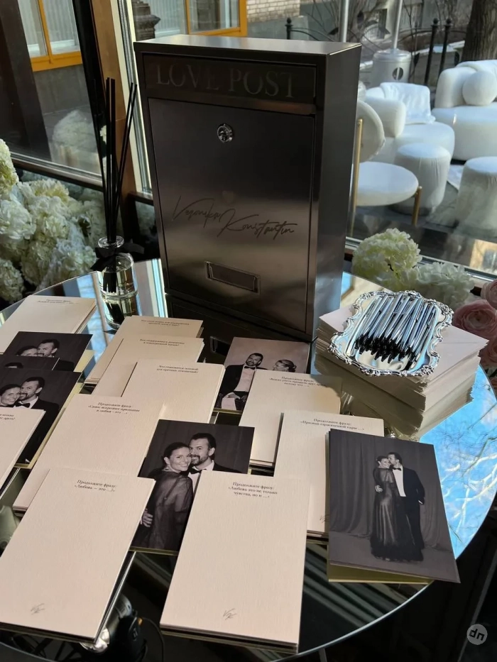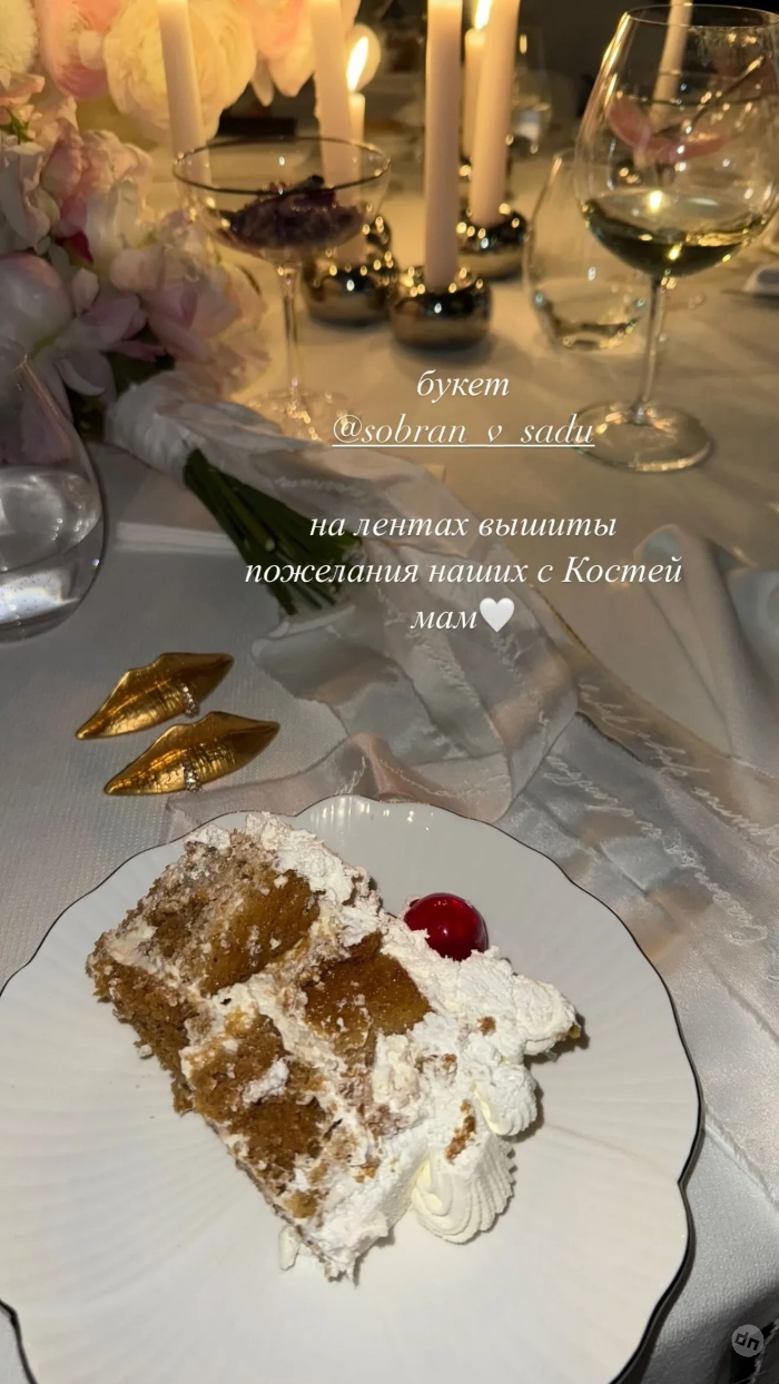 https://t.me/spletnik2006/27322К гостям, которые в качестве пригласительных получили шоколад ручной работы, невеста вышла в классическом белоснежном платье Valentin Yudashkin Couture и с букетом, перевязанным лентами с пожеланиями от матерей невесты и жениха. По ходу вечера Степанова примерила ещё два образа. В качестве подарков присутствовавшие на торжестве получили свечи с особым ароматом свадьбы, которые залили в фарфоровые пиалы со снимками из свадебной фотосессии.