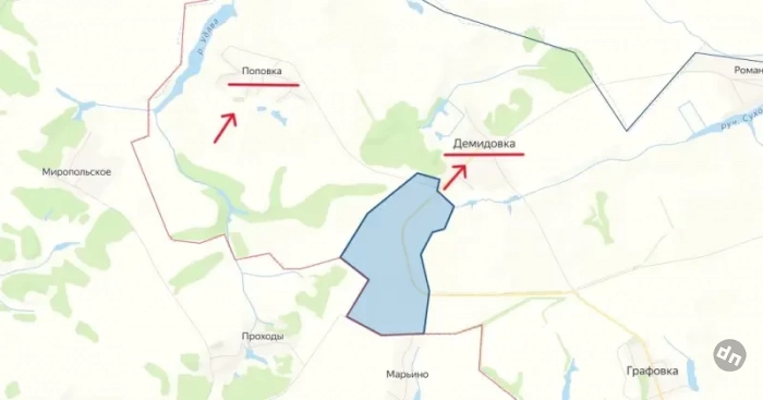 Не сумев внезапно захватить Демидовку, противник предпринял обходной маневр, атаковав подразделением Сил специальных операций ВСУ село Поповка. Этот населенный пункт расположен ближе к Сумской области. Вероятно, это делается для того, чтобы взять Демидовку в полукольцо.