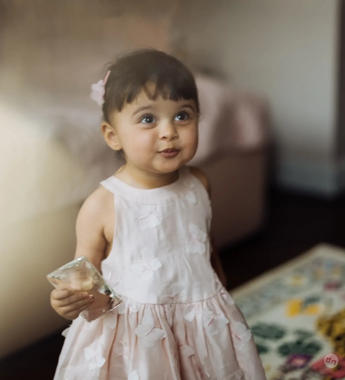 На новых снимках Самира позирует в розовом платье и с такого же цвета заколкой. Также Равшана добавила свой совместный снимок с дочерью и пару снимков девочки с её братом Гаспаром.