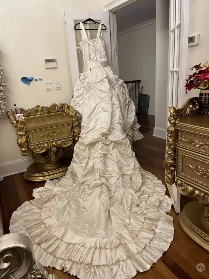 Информация о продаже появилась в блоге Neverworn, который ведёт бывшая сотрудница Vogue Лиана Сатенштейн на Substack. Она рассказала, что её подруга Патрисия Торвальдс обнаружила это платье, когда искала свадебные наряды Dior 80-х годов. В переписке с ней продавец сообщил, что приобрёл его у Мелании Трамп в 2010 году за 70 000 долларов через общего знакомого. Он также признался, что внёс некоторые изменения в оригинальный дизайн: добавил новый слой атласа, вышивку, дополнительную ткань на спине и бретельки. Примечательно, что в настоящее время платье находится в корзине одного покупателя и доступно для покупки.