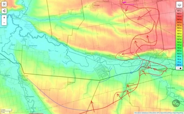 Юрий Подоляка в свежей сводке от 27.03.2025 сообщил о том, что ВС РФ начали штурмовать н.п. Разлив