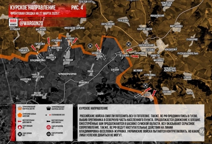 В Курской области ВС России смогли продвинуться в Гуево: свежие данные на 27.03.2025