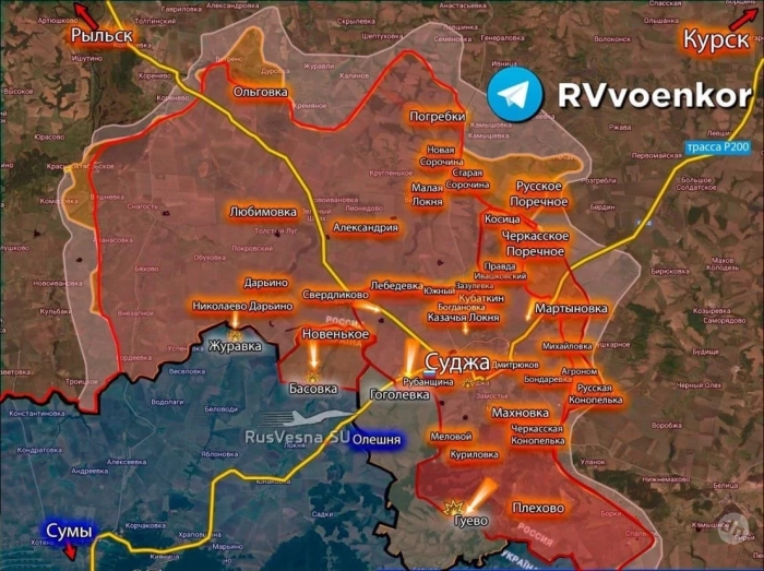 В свою очередь Telegram-канал "Военкоры Русской Весны" пишет о том, что группировка войск "Север" продолжает штурм одного из последних оккупированных посёлков в Курском приграничье, который еще частично удерживают силы спецназа, десантники и пехота ВСУ.