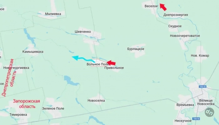 ВС РФ продвинулись южнее Привольненских прудов и ведут бой за село Вольное Поле в 6 км от границы Днепропетровской области