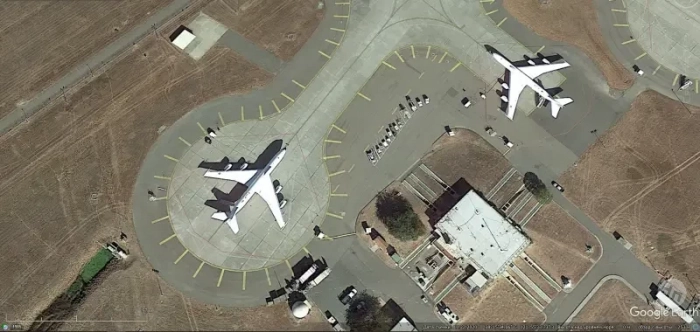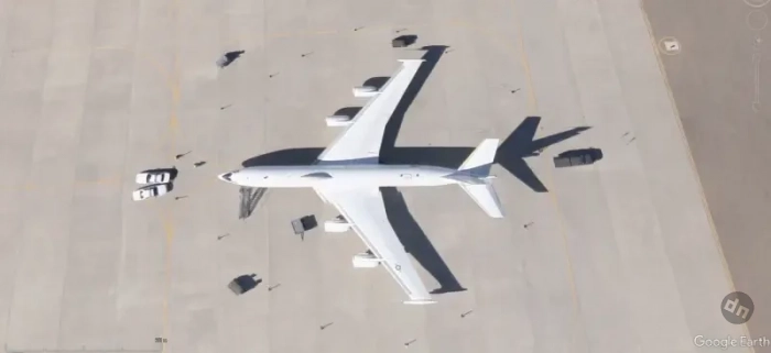 Спутниковый снимок Google Еarth: самолёт E-6В на авиабазе Киртлэнд