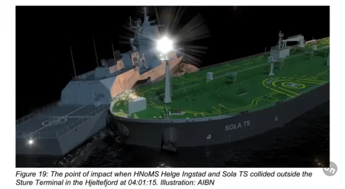 В ночь с 7 на 8 ноября 2018 фрегат норвежских ВМФ Helge Ingstad столкнулся с танкером Sola TS. Танкер, как часто случается при столкновениях между военными кораблями и торговыми судами, получил лишь незначительные повреждения, в то время как фрегат примерно через 10 минут после столкновения оказался на мелководье, где и лег на грунт.