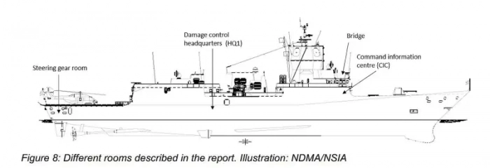 Получившийся в итоге документ поражает размером (состоит из трех частей, в двух из которых около 200 страниц) и тщательным подходом к расследованию. Кроме исследования ошибок, допущенных экипажами судов и береговыми службами, в нем содержатся также результаты анализа функционирования некоторых систем и механизмов фрегата, в результате чего мы с вами можем познакомиться с некоторыми общесудовыми системами кораблей типа Nansen.