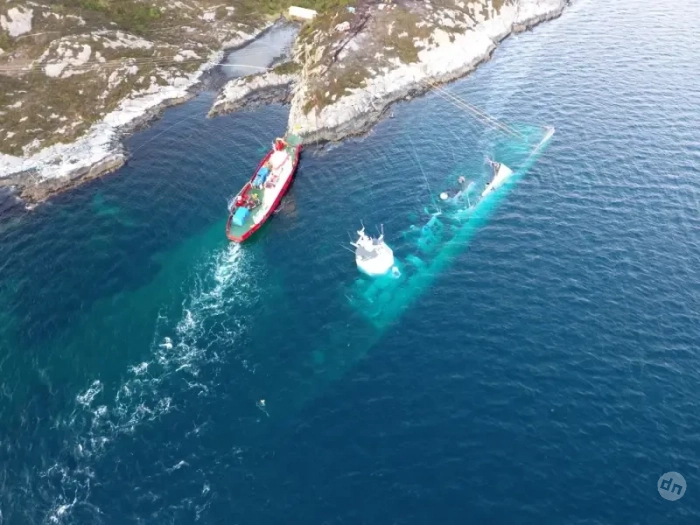 О дальнейших событиях можно узнать из сообщений прессы и прочей медиа. Например, nrk.no уже 13 ноября 2018 года сообщила, что фрегат все-таки сполз со скалы и практически полностью скрылся под водой.