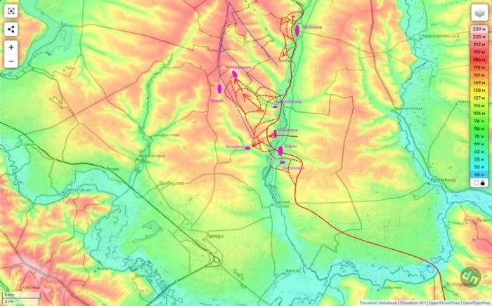 Наши штурмовики сумели выйти к трассе Каменка - Большой Бурлук, что является приговором гарнизону ВСУ в этом последнем оставшимся под контролем противника важным селом на западном берегу реки Оскол. Одновременно с этим наши части сумели взять под контроль высоты над Каменкой с северо-востока.