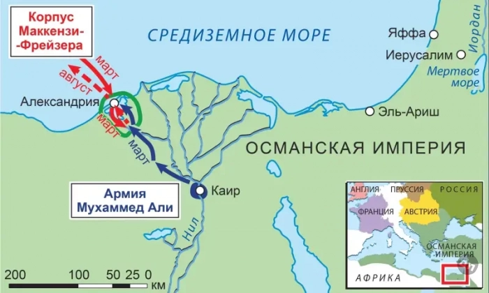 Это нападение вошло в историю под названием «Александрийская экспедиция 1807 года», также известная как «Экспедиция Маккензи-Фрейзера». Оно было совершено британскими войсками при поддержке британского флота в рамках Англо-турецкой войны 1807-1809 годов с целью захвата Александрии Египетской для обеспечения операционной базы против Османской империи в Средиземном море, закончившаяся неудачей с тяжелыми потерями.
