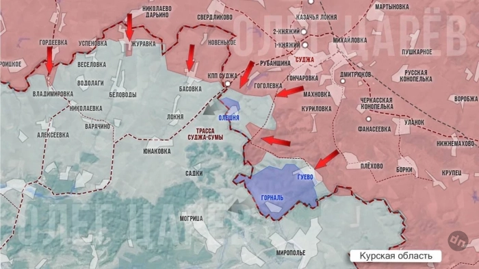 Он напомнил, что под контролем украинских сил остаются три курских населённых пункта: сёла Гуево и Горналь, а также хутор Олешня.