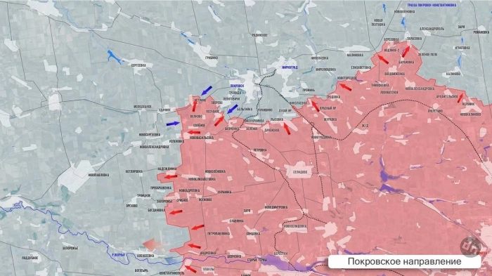 На Покровском фронте ВС РФ восстановили практически все позиции, утраченные в ходе февральского наступа ВСУ. В Удачном, Песчаном и Шевченко идут бои, но ситуация относительно стабильна. В Котлино противник предпринимает контратаки, но наши бойцы удерживают рубежи. По всей линии от Успеновки до Алексеевки идут очень интенсивные бои при поддержке артиллерии и авиации. Локальные успехи есть в Новоалександровке и в районе Богдановки. Между Котляровкой и Троицким, по данным с мест, может получиться прорыв в направлении на Новопавловку. В Лысовке ВС РФ выбили противника из села. В Тарасовке локальные бои за каждый дом.