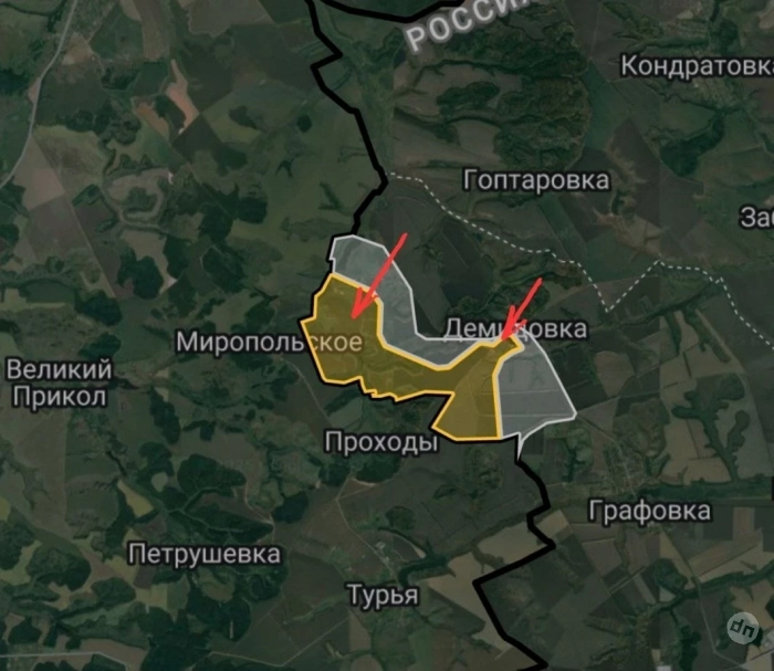 Российские войска наступают по линии Владимировка - Веселовка - Журавка, продавливая оборону противника в Сумской области. Украинские инженеры срочно возводят оборонительные укрепления в направлении к городу Сумы. До него от нашей границы по прямой около сорока километров.
