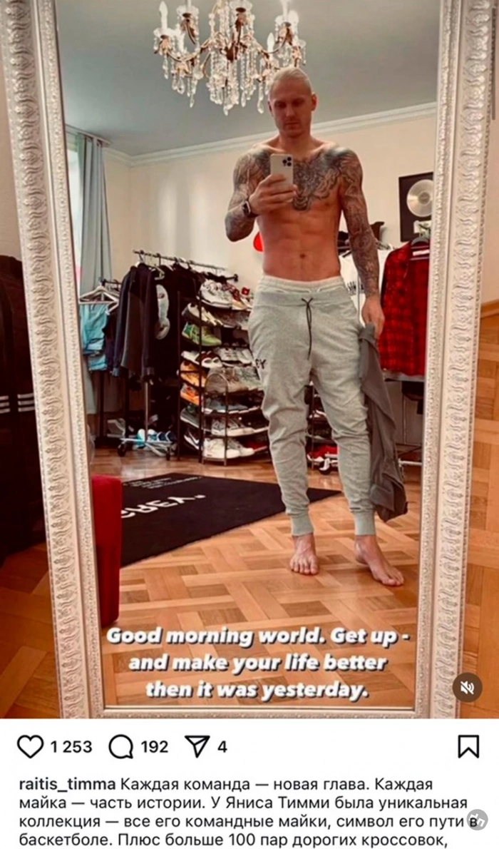 «Каждая команда — новая глава. Каждая майка — часть истории. У Яниса Тиммы была уникальная коллекция. Его командные майки, символ его пути в баскетболе. Плюс больше 100 пар дорогих кроссовок, редкие модели, все 48,5 размера. Но теперь этого больше нет. Все исчезло. Коллекция, в которую вложены годы, деньги, память… Просто пропала…» — сообщил в соцсетях Райтис Тимма.