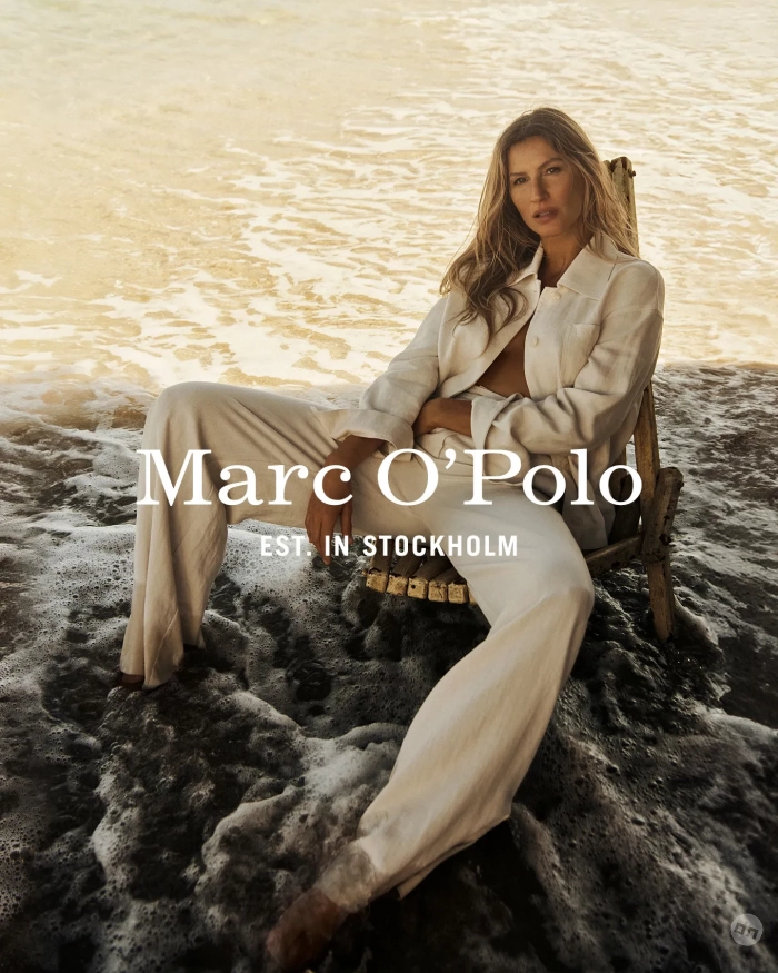 Жизель Бундхен стала лицом весенней рекламной кампании Marc O'Polo. На снимках, сделанных фотографом Лахланом Бейли, 44-летняя супермодель позирует без бюстгальтера на фоне океана в бежевом плаще, белом брючном костюме и вязаной тунике. На официальном сайте бренда Жизель представлена как "глобальная икона, воплощение супермодели, гордая мать, предпринимательница, посол ООН и экоактивистка".
